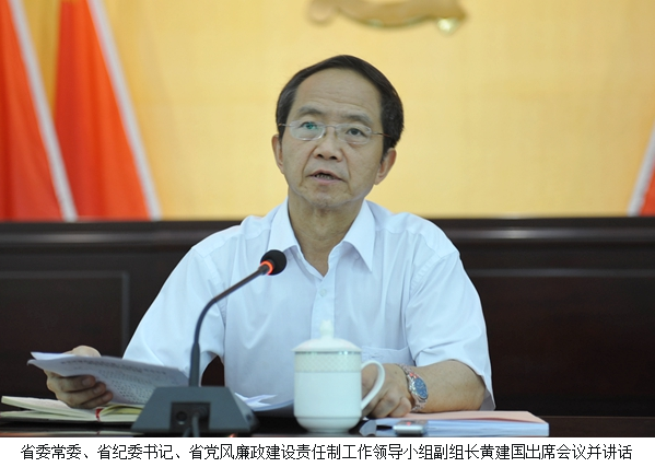 黄建国在讲话中对领导小组办公室成员单位、领导小组办公室如何进一步加强党风廉政建设责任制工作提出要求。黄建国说,落实党风廉政建设责任制既是政治责任,也是历史使命,要深化思想认识,强化落实党风廉政建设责任制的责任担当。要切实履职尽责,突出重点工作,积极主动作为,确保党风廉政建设责任制工作落到实处。从今年开始,全省党风廉政建设责任制执行情况的检查考核明确由省委、省政府领导带队,省委办公厅牵头组织,并加强考核成果的运用,加大责任追究力度,促进责任制落地生根。