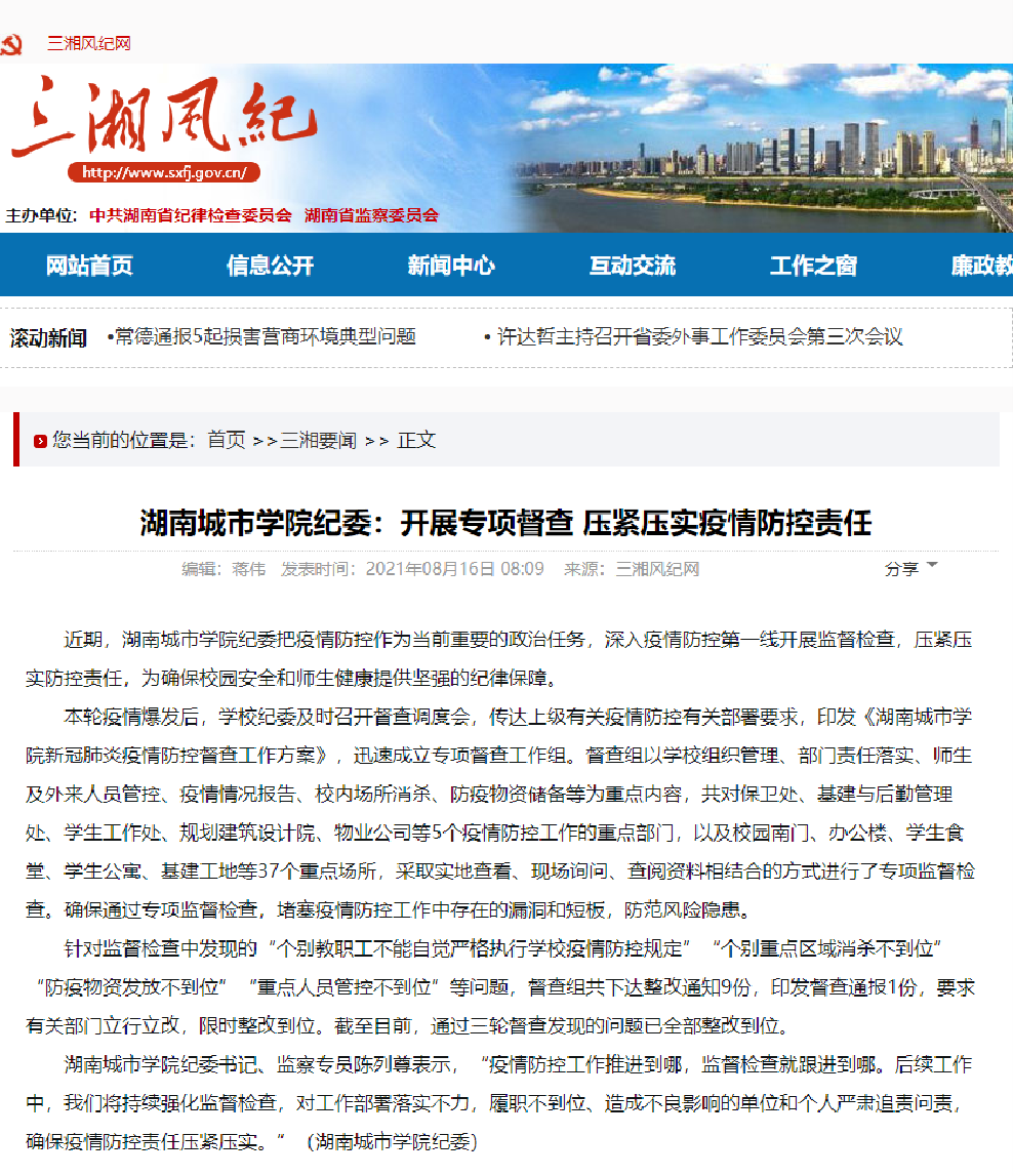 近期,湖南城市学院纪委把疫情防控作为当前重要的政治任务,深入疫情防控第一线开展365英国上市公司在线,压紧压实防控责任,为确保校园安全和师生健康提供坚强的纪律保障。
