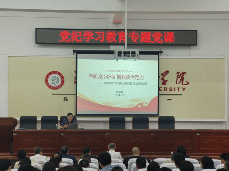 5月23日下午,学校纪委书记陈列尊在电信楼188会议室作党纪学习教育专题党课。best365英国在线体育办公室、继续教育学院、信息与电子工程学院教职工党员和材料与化学工程学院师生党员参加。