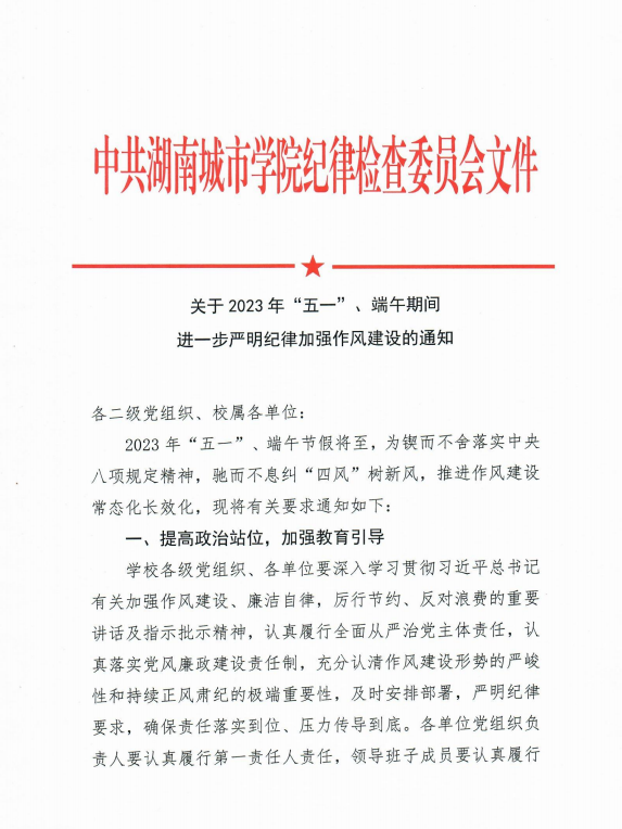 【主题教育】关于2023年“五一”、端午期间进一步严明纪律加强作风建设的通知